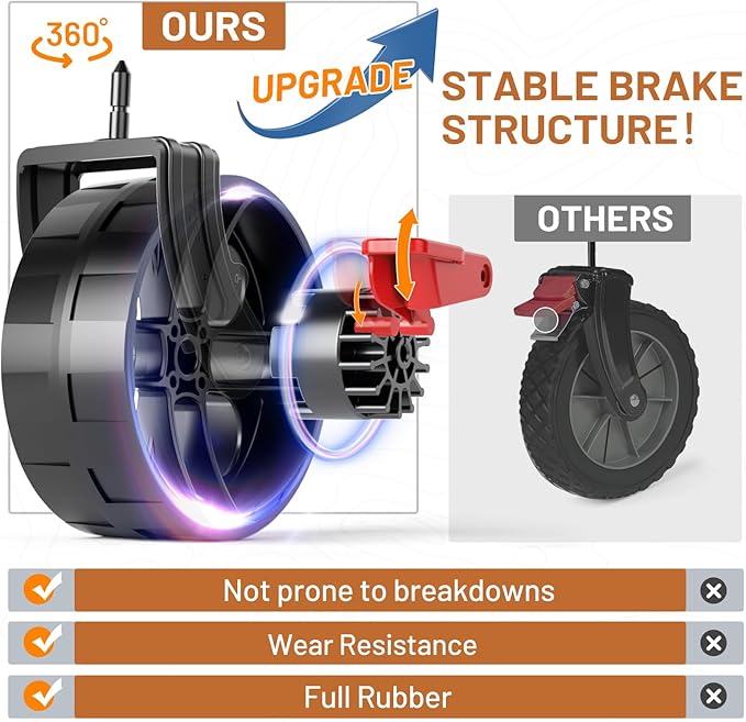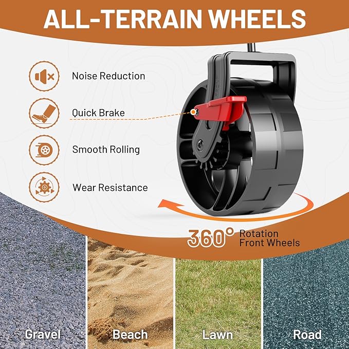 - ALL-TERRAIN PERFORMANCE: Equipped with 7.5" diameter all-terrain wheels with brakes,the middle tread is made of rubber, quiet and wear-resistant; 360° rotating front wheels and enable this wagon to maneuver easily.