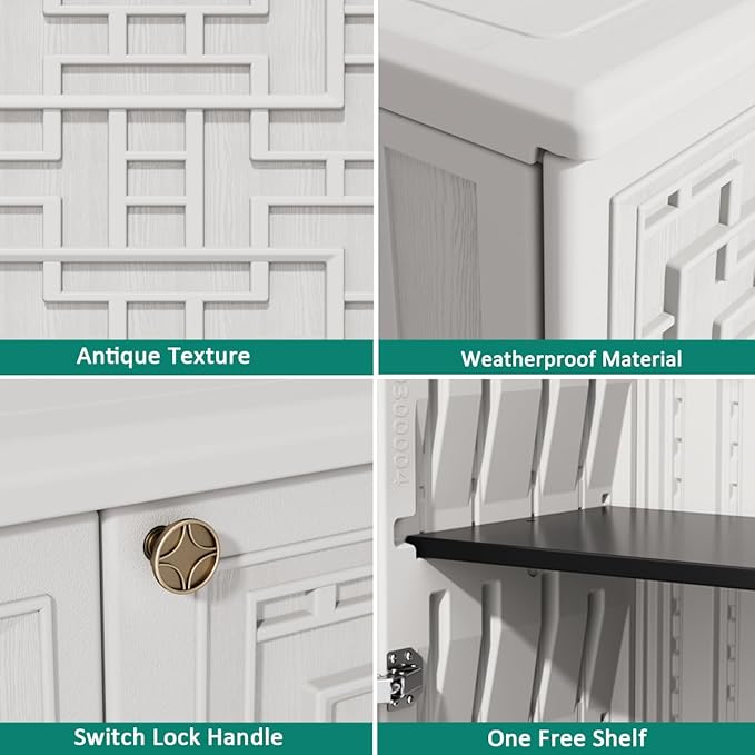 - 【Colorfast HDPE Resin Material】This KINYING outdoor cabinet is made of premium HDPE Resin, which is durable and colorfast. No odor, UV resistance, no rust, easy to clean.