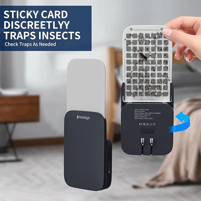 - Multifunctional Flying Insect Trap: Gnat killer is a powerful tool for capturing flying insects such as bugs, moths, fruit flies, gnats, and more. With its UV light technology, the trap lures insects towards it and once they reach the surrounding, they become trapped on the glue board with no chance of escape. Additionally, the trap doubles as a night light, making it a helpful sleep aid.