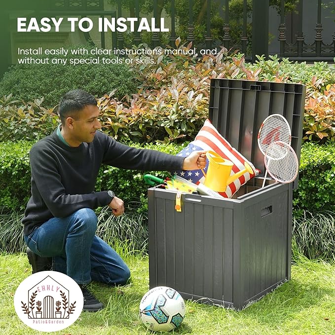 - Easy assembly and low maintenance: This waterproof patio storage box is constructed from six easily assembled pieces with clear instructions, making installation a breeze and requiring no special tools. It's even easier to install with the assistance of two people. Cleaning is a simple task, as it can be done with water directly, and the box requires minimal maintenance. If you encounter any issues, please don't hesitate to contact us, and we'll do our best to assist you.