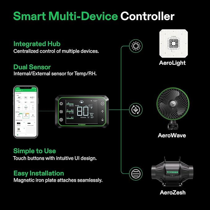 - Smart Grow with GrowHub E42A: With a built-in temp and humidity gauge and one probe, the GrowHub E42A Controller monitors changes in both the internal and external environment including VPD; WiFi connectivity and app control allow you to access real-time data and remotely manage equipment from anywhere