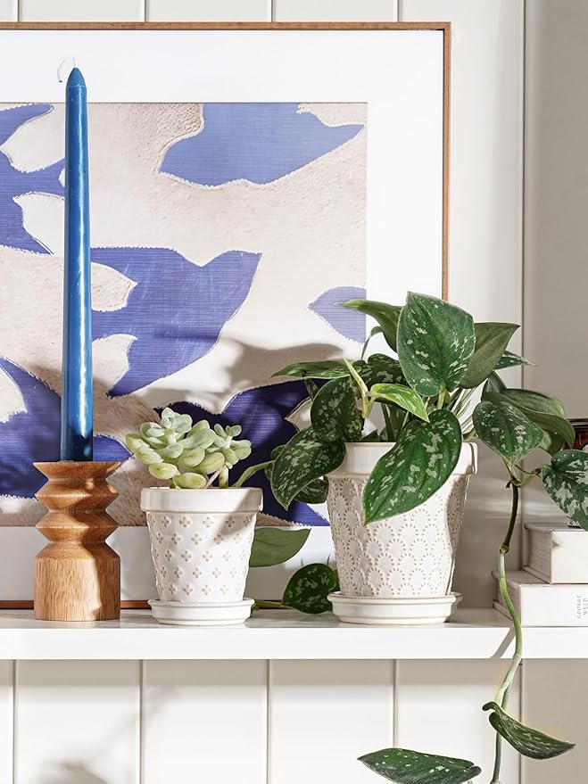 - Elegant & Space-Saving Decor: The beautiful arctic white glaze and raised embossed patterns add a touch of elegance to any small space. Their tiny footprint allows you to decorate areas where larger pots can't fitโon narrow bathroom counters, office cubicles, bookshelves, or as a cute centerpiece on a side table