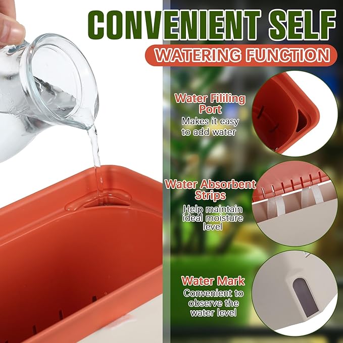 - Growth and Transplanting Convenience: our self watering herb planters are double layer designed to maximize growth potential by creating an ideal environment for roots to thrive; This design also makes transplanting your plants in spring and other seasons a breeze, giving you the flexibility to easily reposition and transplant your plants as needed, an ideal choice for plant lovers, beginners, and experts alike