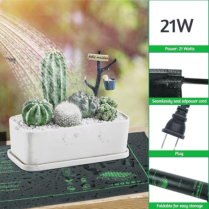- CONSISTENT AND SAFE HEATING: Our advanced heating wire and insulation technology ensure that the mat reaches the desired temperature quickly and evenly, without the risk of burning your seeds. It keeps the roots of your plants warm, promoting healthy growth. You can confidently leave it on 24 hours a day without worry.