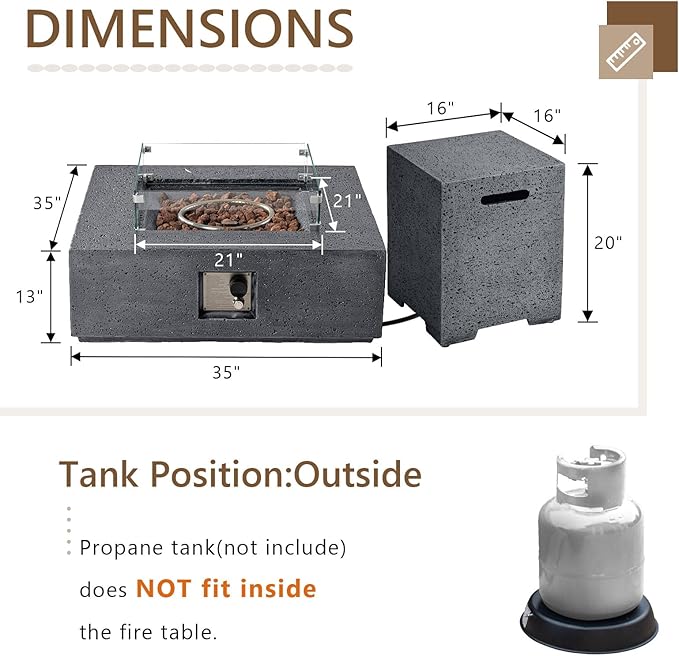 - 🔥【Spacial Economy】: Large enough coffee table surface to set your coffee or nightcap. The entire piece can easily be picked up from the side handles by two people. It fits a 20lb propane tank which should be put outside the fire table.