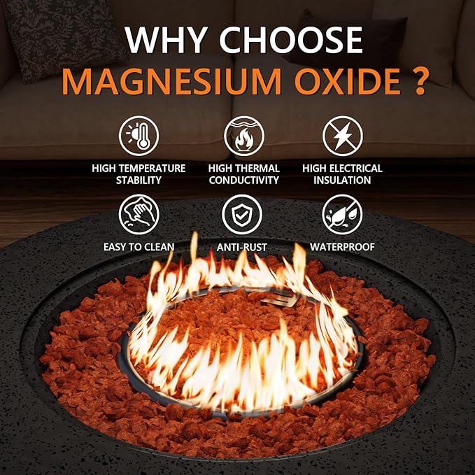 - 🔥【Sundown, Fun Up】: When the sun sets and your outdoor paradise begins to cool a bit, no need to go inside. Light the fire pit table and warm up the patio night! You can even serve an intimate dinner for four right on the spacious ledge surrounding the warm glowing lava rocks. What could be cozier? Clean burning propane flame provides soothing warmth, gentle lighting and a centerpiece for many outdoor or backyard evenings worth remembering.