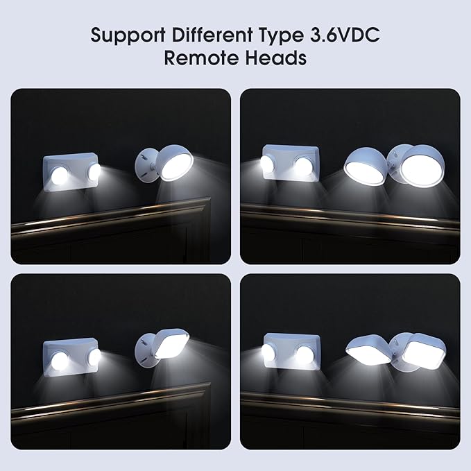 - 【Easy Installation In Minutes】 Universal J-box mounting pattern and automatically snaps together, can be wall, ceiling mounted. 360 degree rotation adjustable lamp heads allow this emergency light to be pointed in any direction you want. Includes RC wire and screws accessories. Easily connect 1 double lamp remote head or 2 single lamp remote heads.
