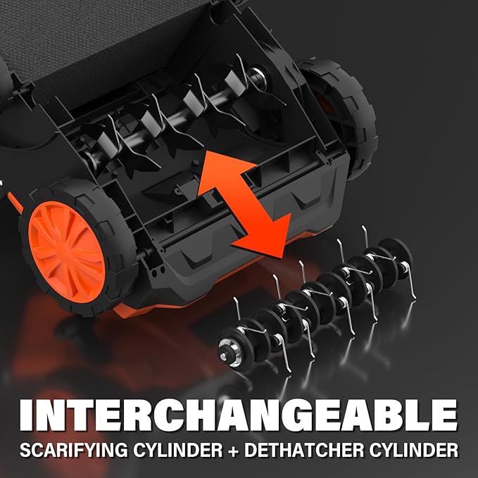 - 2-in-1 MULTIPURPOSE: The lawn dethatcher comes with a dethatching blade to remove thick layers of dead plants of your lawn, and a scarifying blade to cut grass roots for thicker and healthier lawn growth.