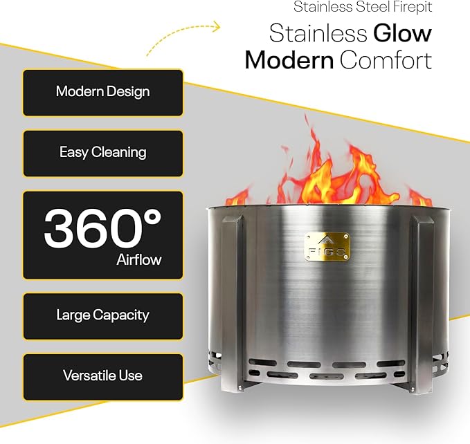 - Stainless Steel Smokeless Fire Pit: Sized at 450 x 450 x 415 mm, this durable patio fire pit outdoor is ideal for family gatherings. Its design minimizes smoke, keeping your clothes fresh while offering long-lasting performance
