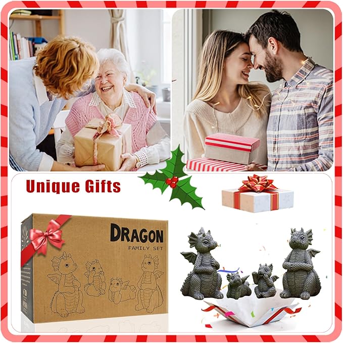- Perfect Decor:Making our four dragon family ideal decor for placing under outdoor flowers, in garden plants, or as charming kitchen and table decor