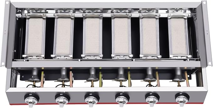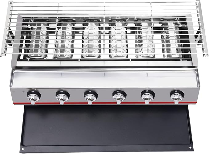 - INDEPENDENT SWITCH: 6 The burner switch is designed independently, you can choose the number of burners as needed to control the grill area and firepower. The grill's flexible independent switch is more energy efficient and environmentally friendly. Six independent temperature adjustment knobs can fine-tune the temperature, very convenient. The right temperature allows food to achieve better taste and flavour.
