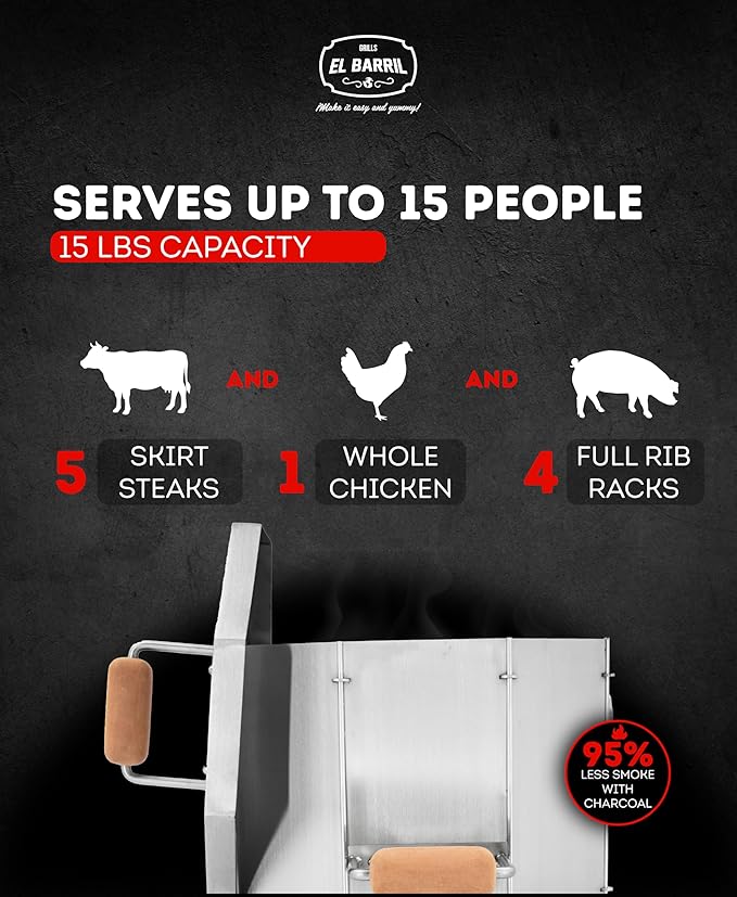 EL BARRIL 15lbs Stainless Steel Foldable Charcoal Smoker & Grill Barrel – Portable Outdoor Smokers with Grilling Accessories