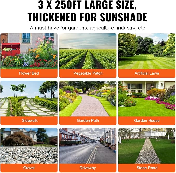 - Heavy Duty Weed Barrier Fabric: Crafted from 5OZ high-density, tear and corrosion resistant polypropylene, VEVOR 3 x 250FT woven weed barrier landscape fabric is the preferred choice for agriculture and industry. It ensures superior weed prevention and promotes soil health, keeping your landscaping remain weed-free for an extended period.