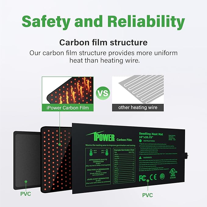 - Reliable heating: the mat is made of upgraded heating film, professionally ensuring uniform heating. The mat warms root area 10-20β(5-11β) over the ambient air temperature, perfect for seeding and cutting propagation,