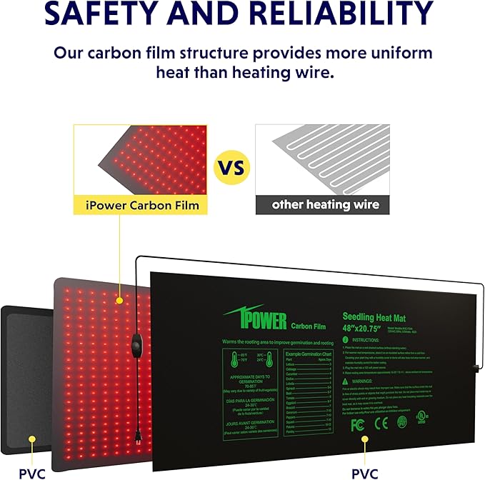 - Reliable heating: the mat is made of upgraded heating film, professionally ensuring uniform heating. The mat warms root area 10-20β(5-11β) over the ambient air temperature, perfect for seeding and cutting propagation,