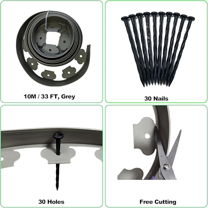 - 【Easy Installation】You just need to bend it to the shape of the landscape you want, place the edging around the flower beds, trees, and gardens, hammer in spikes is done . With 30 spikes and our landscape edging, everyone can be a garden-design master.