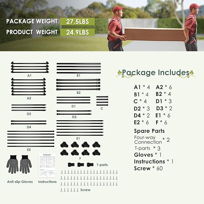 - Stable Structure -- Unlike metal iron clips, Our grape trellis uses traditional screws to hold them in place for stability while maintaining good-looking appearance. This garden arch trellis has a durable triangular support design that keeps the structure stable and sturdy enough to support plants with ease.