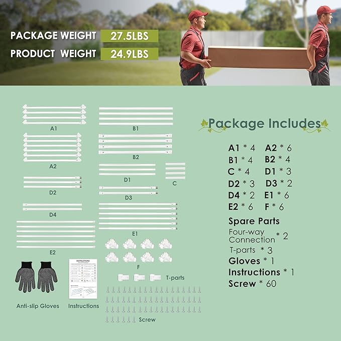 - Stable Structure -- Unlike metal iron clips, Our grape trellis uses traditional screws to hold them in place for stability while maintaining good-looking appearance. This garden arch trellis has a durable triangular support design that keeps the structure stable and sturdy enough to support plants with ease.
