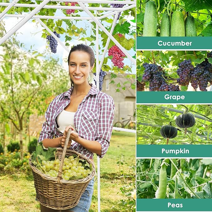 - Versatile Plant Trellis -- Our plant arch trellis adds vertical space for veining plants in your garden, keeping your plants off the ground and reducing rot and disease. This elevated position also increases the amount of time your plants are exposed to air and light. Perfect height to harvest vegetables and fruits. Ideal for planting grapes, cucumbers, peas, zucchini,flowers and other climbing plants.