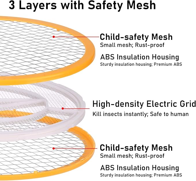 Electric Fly Swatter Handheld Bug Zapper - Indoor Outdoor 20in Zapping Racket for Pest Mosquito & Flies - Battery Powered Safe to Touch with 3-Layer Safety Mesh, Large Size, Pack of 2