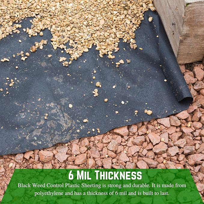 - Longevity - This 6 mil black plastic sheeting is manufactured to withstand any type of use. It will stand up to rain, wind, cold, and heat, ensuring that you get excellent use out of it. Our thick black plastic sheeting is engineered to be a superior material, usable for many different applications.