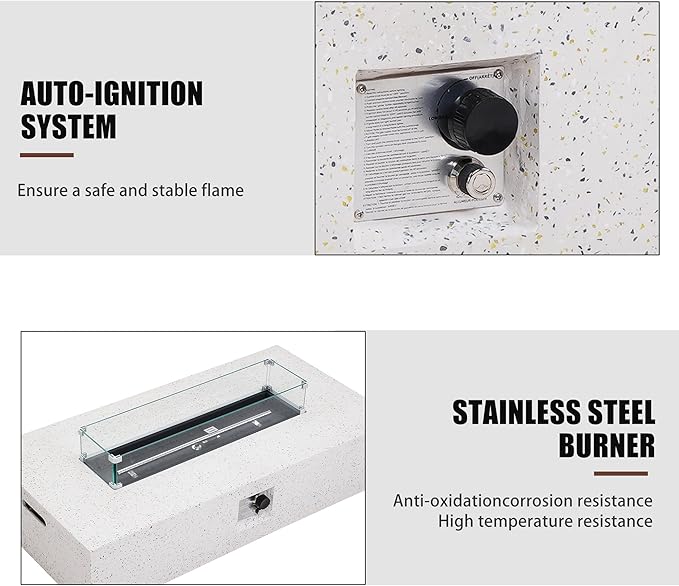 - 🔥 Glass Wind Guard: This rectangle gas fire pit comes with a matching glass guard to protect you from fire damage and increases aesthetics. This is made of tempered glass so you can rest assured of the quality and arrange this piece however you please and your set will always look classy