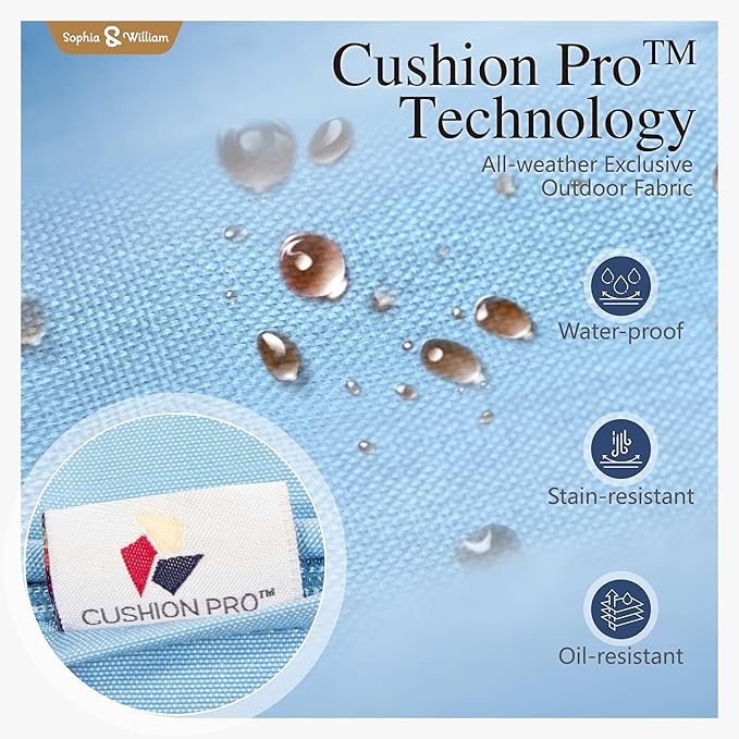- Cushion-Pro Technology: Experience effortless maintenance with the Sophia & William conversation set. Crafted with premium olefin, our Patent Cushion Pro outdoor fabric boasts exceptional water-repellent, soil-release, and stain-resistant properties. Simply use a cleaning spray and watch the stains vanish, leaving your furniture looking as good as new