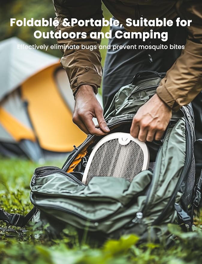 - Convenient 180° Foldable Design Easy to Carry or Store: Turn YISSVIC mosquito swatter on, Fold it to 90 degree to stand on or 180 degree into your backpack for camping.Foldable design for travel and outdoor activities. The purple attracting light only light up under auto mode