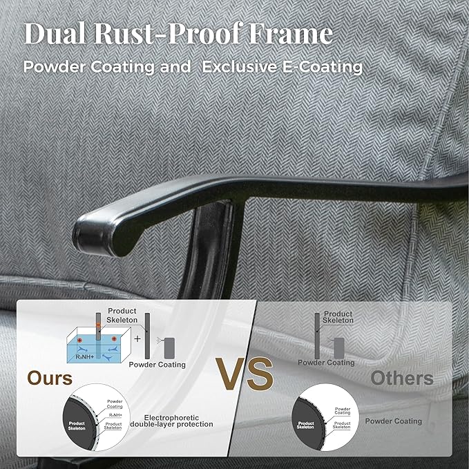 - 【RELIABLE ALL-WEATHER METAL CONSTRUCTION】Built from durable metal with E-COATING and POWDER-COATING finish, ensuring resistance to all weather conditions, rust-proof qualities, and easy maintenance. The sturdy wrought iron frame can withstand various weather conditions, with the single chairs supporting up to 350 lbs and the 3-seater sofa accommodating up to 900 lbs, promising long-lasting reliability and durability