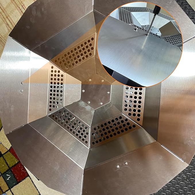 - THICKENED MATERIAL FOR DURABILITY: KEESHA's Yukon fire pit heat deflector is constructed from thickened stainless steel,treated with a special process to resist rust and prevent warping.This robust design not only enhances structural strength but also ensures stability and durability during use.Whether indoors or outdoors, it remains flat over time,maintaining both attractiveness and functionality.KEESHA's Heat Deflector is built to last a lifetime of good moments alongside your Yukon fire pit