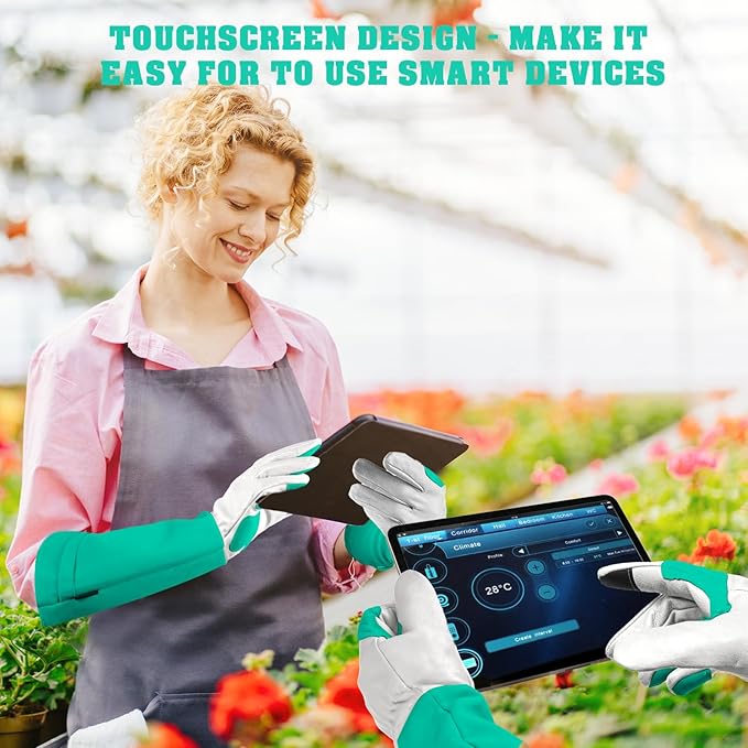 - Touch Screen Design GARDENING GLOVES: The work gloves with special touch screen design, which more humanization and ergonomic. The unique and practical 2 touchscreen capability design(thumb&forefinger) that assures you won't have to remove the glove in order to use your phone.