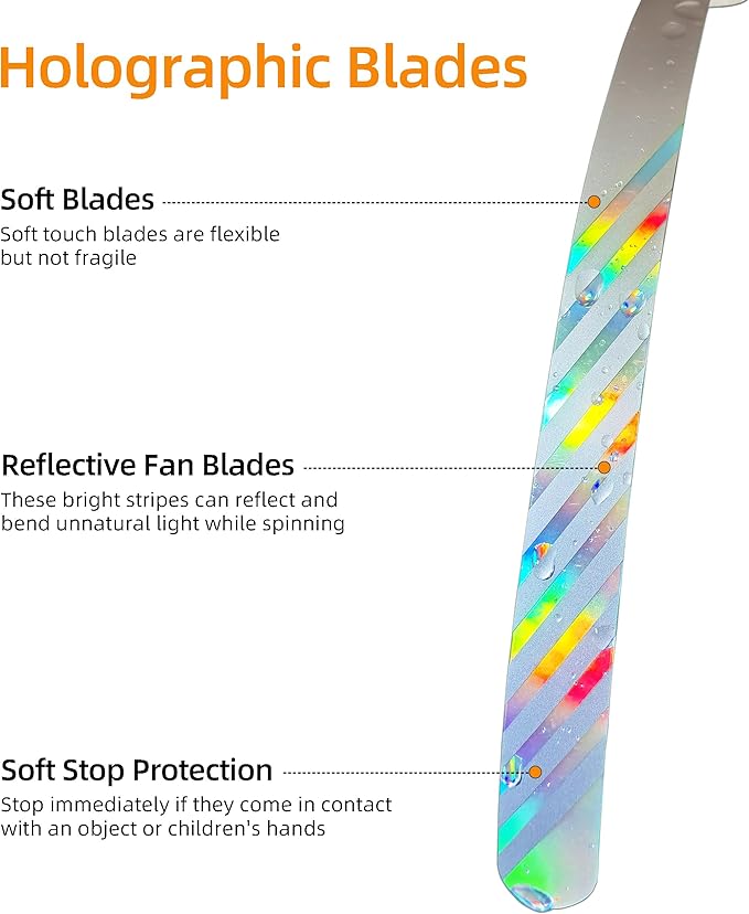 - 【How does it work】There is a long strip on the fan blade, which can emit bright colors in the light and improve the working efficiency of the fan.