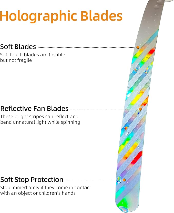- 【How does it work】There is a long reflective strip on the fan blade, which can emit bright colors in the light and improve the working efficiency of the fan.