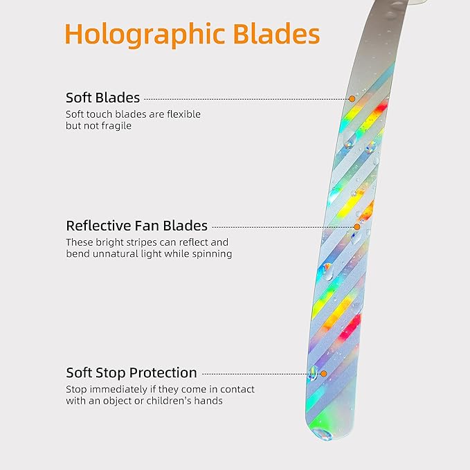 - 【How does it work】There is a long reflective strip on the fan blade, which can emit bright colors in the light and improve the working efficiency of the fan.