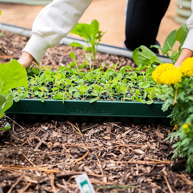 - Featuring 76 spacious growing cells per tray, you can ensure great seed-starts and propagations with Vego Garden’s Stackable Seedling Trays! Our innovative support columns allow you to stack your trays to save space for more gardening fun!