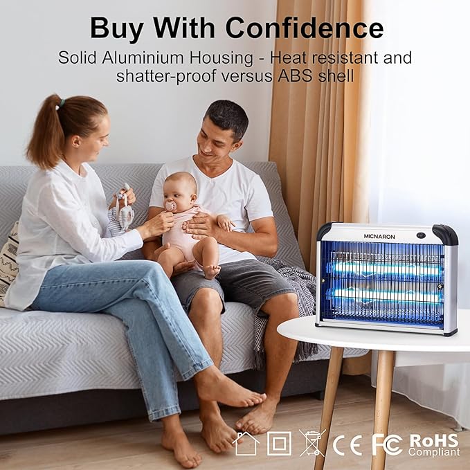 - π«ππππππ, π½ππππππππ, πππ πΎππ π πͺπππππππ: Made of fireproof aluminum alloy material, the mosquito zapper is resistant to high temperatures and oil. It can be placed or hung anywhere in your home with a coverage area of up to 2100 sq. ft, the high-powered electric bug zapper provides reliable and effective pest control for a wide range of indoor space.