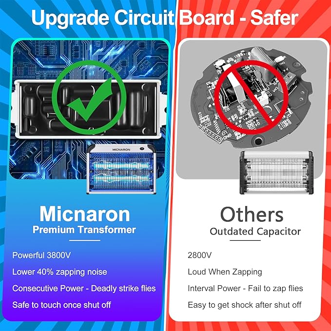 - π¨π ππππππ π»πππππππππ πππ π³ππππππππ: The mosquito killer lamp utilizes 2024 newly transformer that generates and maintains a constant 3800V zapping power, ensuring a higher bug-killing rate compared to other zappers, effectively attracting a wider range of bugs for efficient indoor pest control.