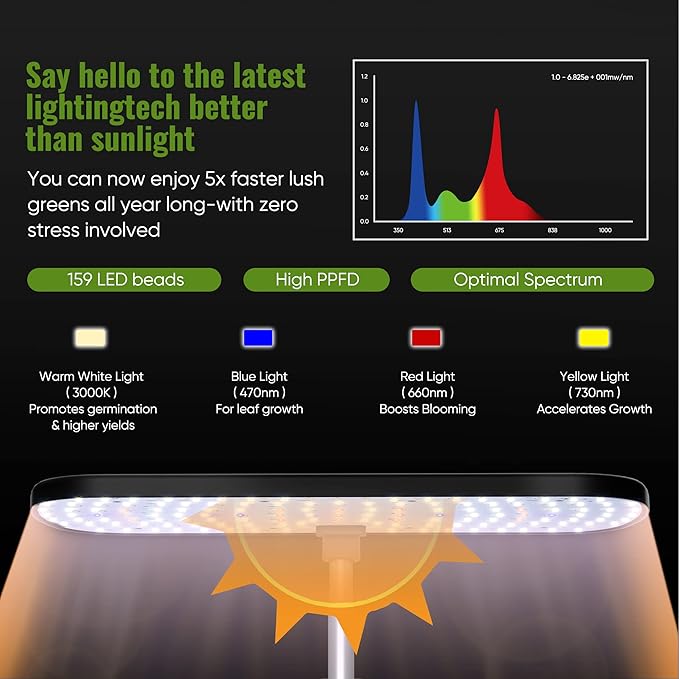- NNOVATIVE GROW LIGHT MODES: The LED grow lights in this indoor herb grow kit include 3 timed light grow modes. It greatly extends the photosynthesis time of your plants, pushing the growth rate and flavor of your crops to new heights. This allows you to harvest sweeter, lusher fruits and vegetables.
