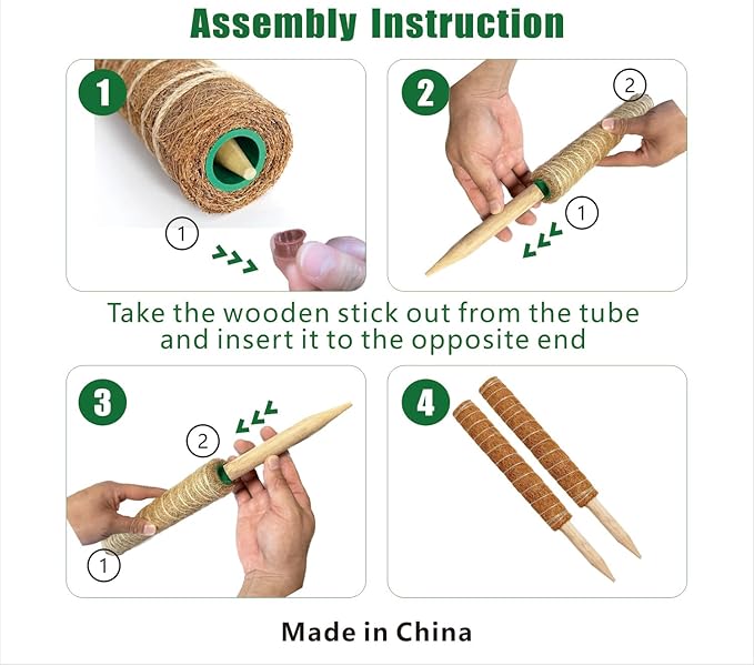 - 【Easy to Use】moss pole contains wooden sticks inside, remove this wooden stake, and insert it into the other end, after that,it is easily to insert into the soil for plant support. Each moss pole for plants is 16.8In length, including 5 Inch wooden sticks, plant pole can be used individually, or stack these plant support stakes together according to the growth of your plants.the plants indoor climb up along the coconut plant pole in the direction of light. plant supports for potted plants.