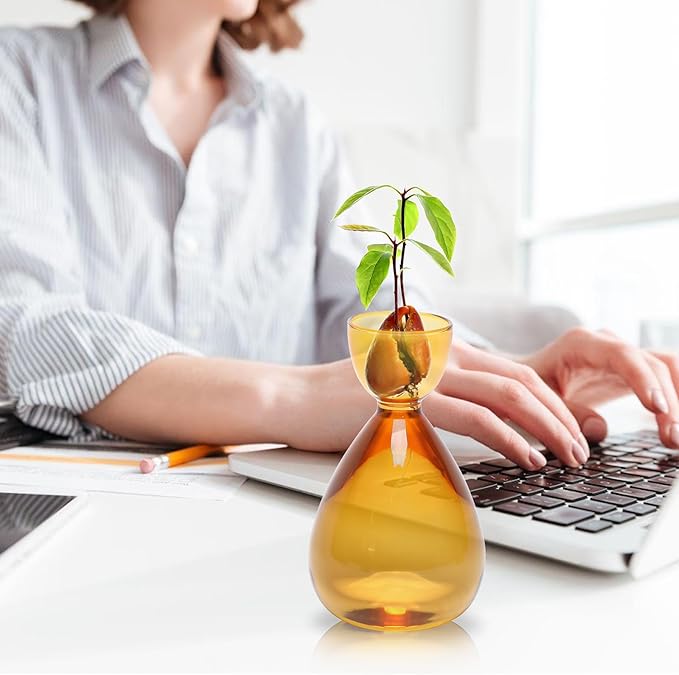 - Cute Design:Avocado seed starter planter vase has pure and simple fashion design,narrower on the neck,can be perfectly blended with avocado seed;The small diameter neck is perfect for lifting and moving.