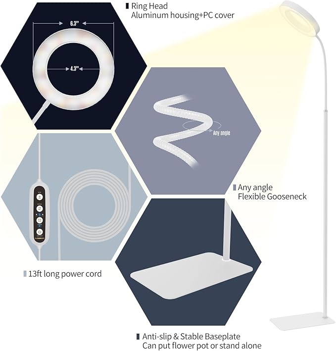 - 【Stable & Convenient Setup】The heavy, non-slip base keeps the grow light stable and secure. With a 13-foot power cord, you can easily place it anywhere—living rooms, bedrooms, offices, or balconies—perfect for all your indoor gardening needs.