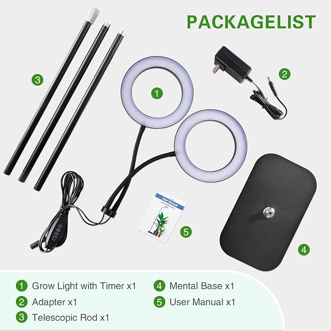 - [Modern Ring Design for Stylish Indoor Growing]-This grow light features a clean, contemporary ring design that doubles as home décor. Perfect for large houseplants, it adds beauty and function to living rooms, bedrooms, offices, and plant corners.