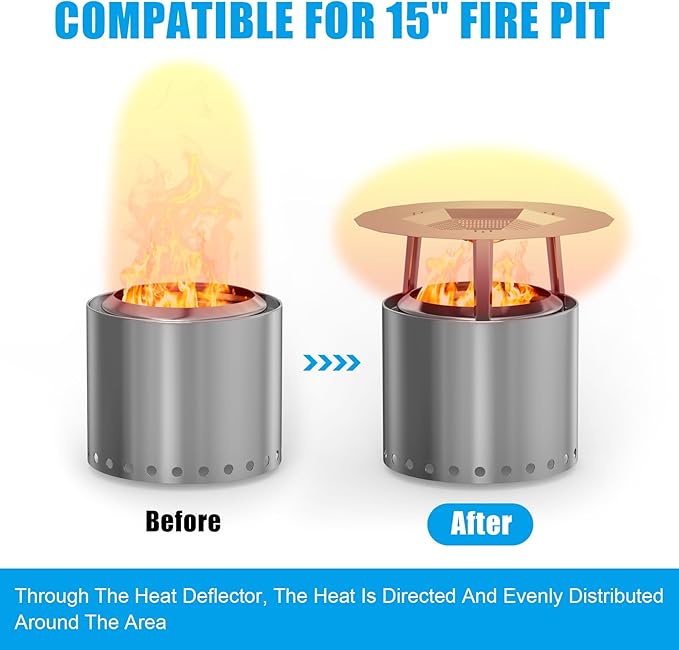 - [Enhanced Efficiency] Our Heat Deflector is specifically designed to enhance the efficiency of your fire pit. By redirecting and distributing heat evenly, it minimizes heat loss, allowing you to experience maximum warmth and enjoyment