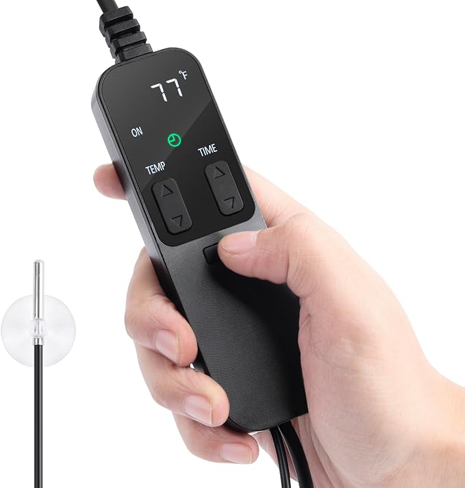- A MUST PID Thermostat for Reptile:The Pymeter PID Heat Mat Thermostat is your reptile’s best friend! With a large digital display, it allows you to monitor real-time temperature with ease. It features a PID function, maintaining a steady temperature within 1°F —no more wild fluctuations! Whether it’s a cozy snake enclosure or a bustling terrarium, this thermostat ensures your reptile’s comfort.