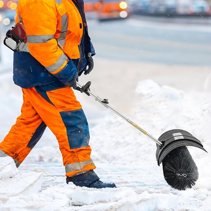 - 【Efficient Large-Area Cleaning: 22.83in Sweeping Width】: With a 22.83in working width and dense 3.15in-long nylon bristles, the snow sweeper covers a large area in one pass, saving time and energy. The nylon brush easily handles light debris on hard surfaces—leveling artificial turf quartz sand, combing lodging turf, cleaning trail dust, or brushing moss off colored bricks—making it perfect for boulevards, sidewalks, or golf courses.