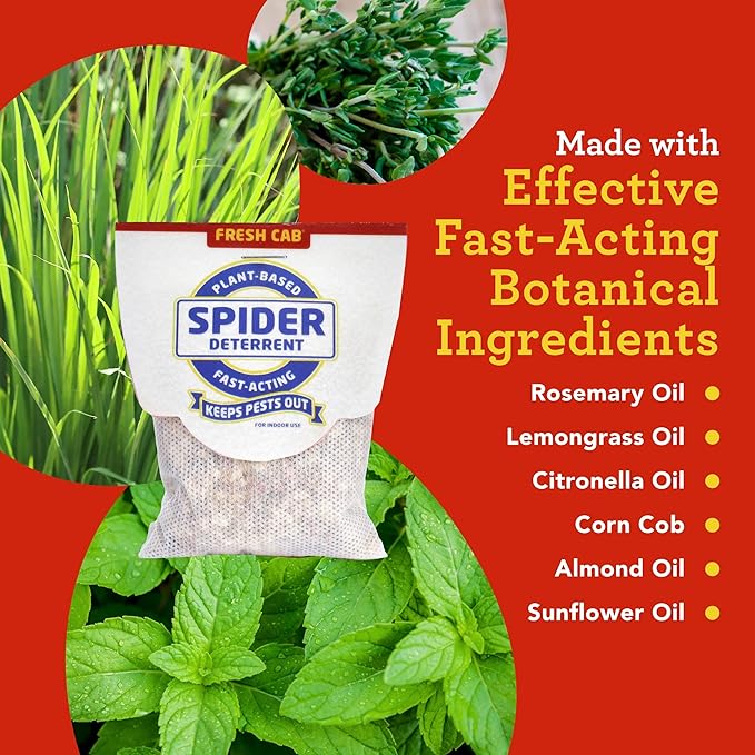 Fresh Cab Spiders Deterrent - Indoor Botanical Pest Deterrent - Safe for Kids & Pets When Used as Directed - Made with Rosemary Essential Oil - 4-Pack