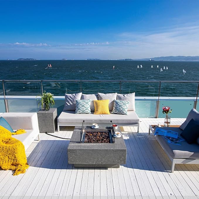 Manhattan Concrete Fire Pit 36" x 36" Outdoor Patio Firepit Includes Lava Rocks Modern Fire Pits & Outdoor Fireplaces for Garden, Deck, Indoor & Outdoor Heating