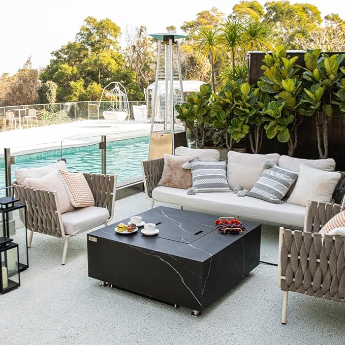 Sofia Marble Fire Pit 39.4" x 39.4" Outdoor Patio Firepit Includes Fire Glass Modern Fire Pits & Outdoor Fireplaces for Garden, Deck, Indoor & Outdoor Heating