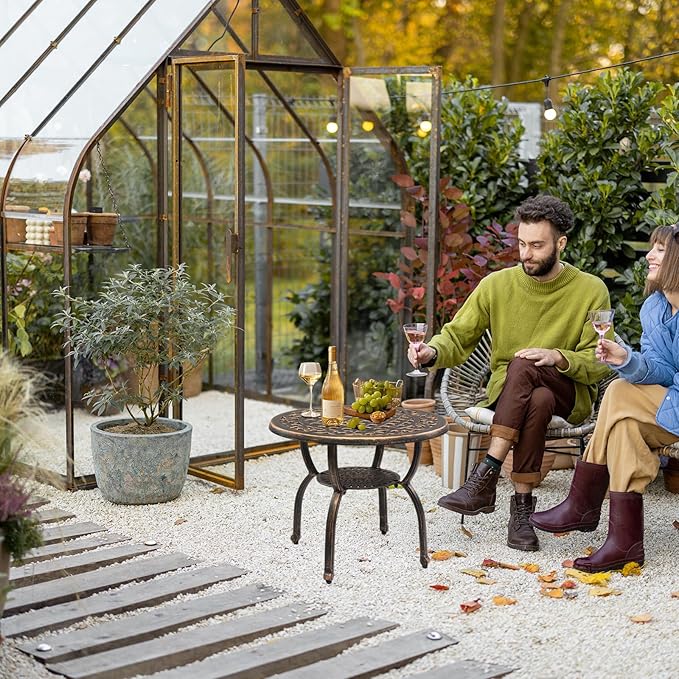 - PREMIUM CAST ALUMINUM: Crafted from high-quality cast aluminum, this round bistro table is built to withstand the elements. With exceptional durability, weather resistance and rust-proof features, it ensures long-lasting outdoor enjoyment with minimal maintenance required