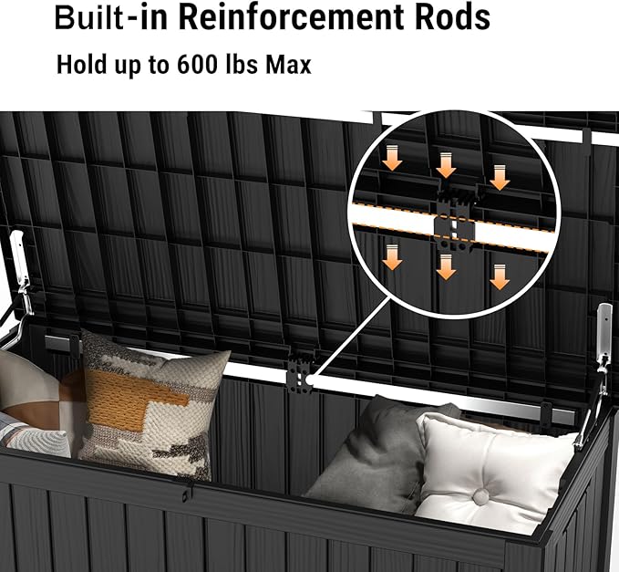 - WATERPROOF& UV RESISTANT: Waterproof resin material is weather-resistant and UV protection, perfect storage solution for your patio furniture cushions, pool accessories, garden tools. no need to worry about the bad weather.